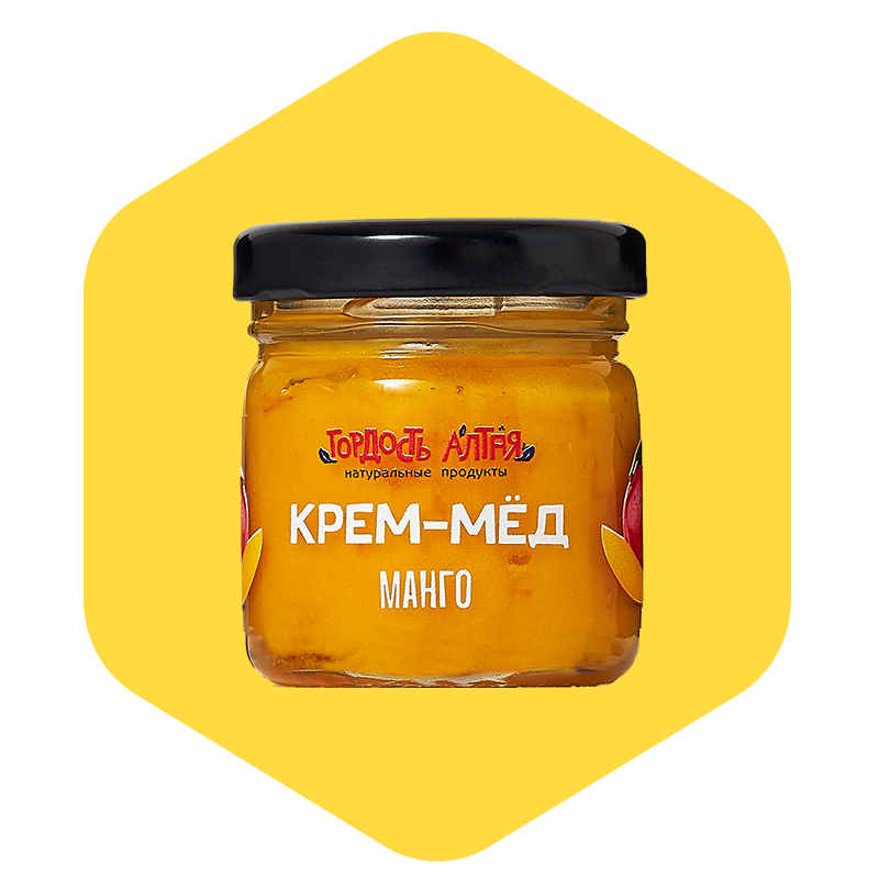 Крем-мёд с манго — это натуральный медовый десерт на основе цветочного мёда из Алтая и фруктовых кусочков настоящего спелого манго. Благодаря технологии холодного взбивания, мёд приобретает нежную кремовую текстуру, а фруктовая добавка делает вкус ярким, экзотическим и гармоничным.